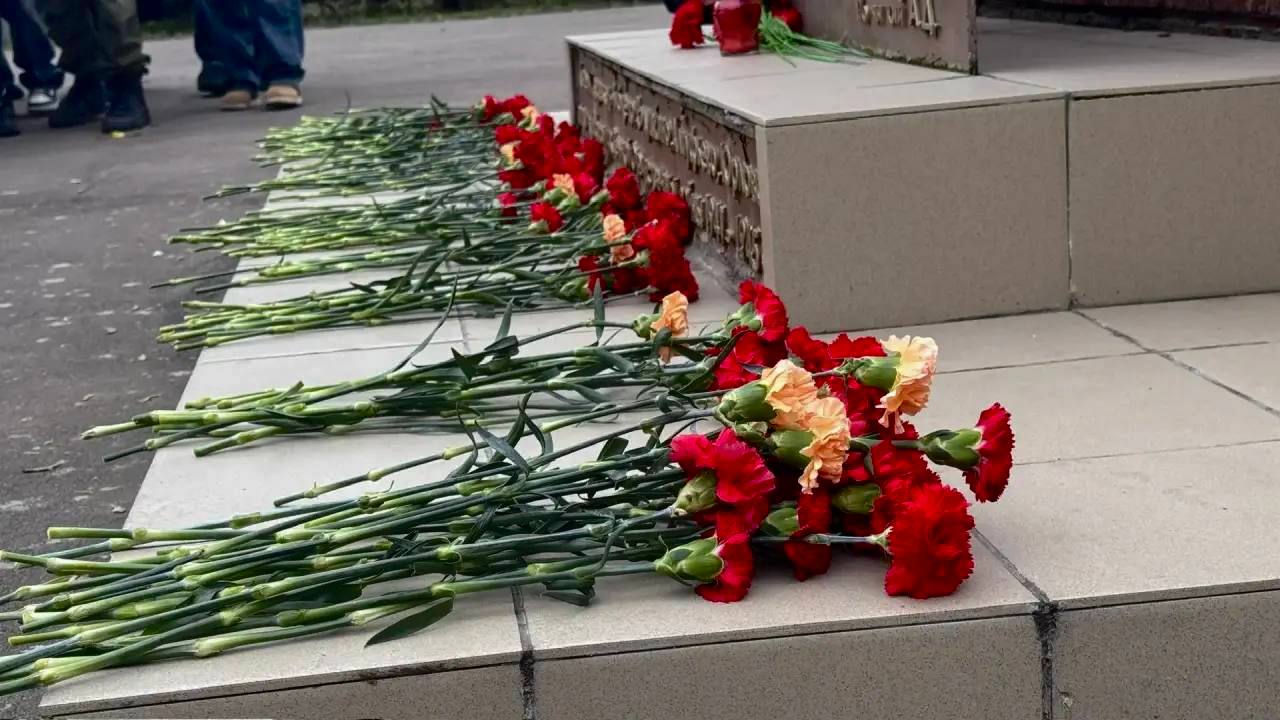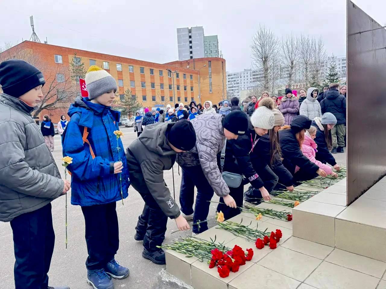 Ученики нашей школы отправились к памятнику «Жителям деревень Бибирево, Подушкино, Юрлово и Алтуфьево, участвовавшим в Великой Отечественной войне» и возложили к нему красные гвоздики, отдав дань уважения